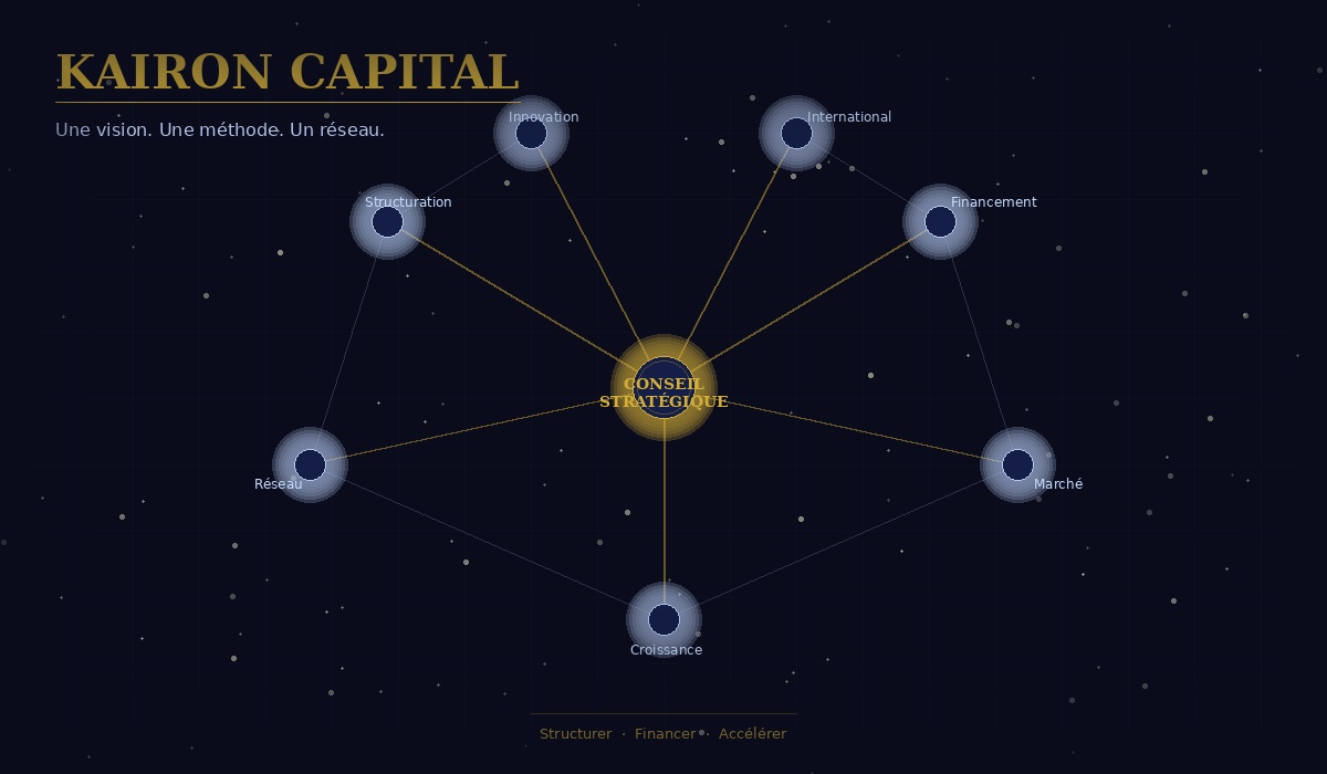 Portée par une vision long terme et une exigence constante de qualité, Kairon Capital s'engage aux côtés de ses clients comme un partenaire stratégique de confiance — présent, réactif et orienté résultats.